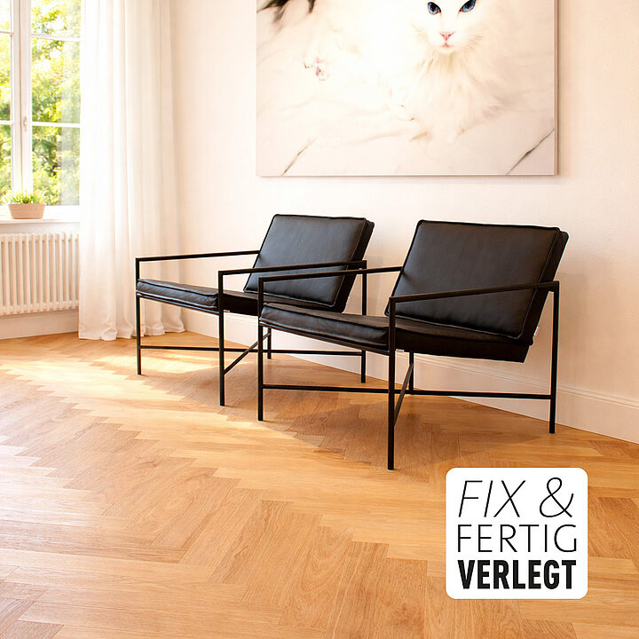 einem fairen Preis. Wenn Sie sich für unser Rumdum-Sorglos-Paket mit der Fix&Fertig-Verlegung entscheiden, genießen Sie alle Vorteile unserer Premium-Verlegung.